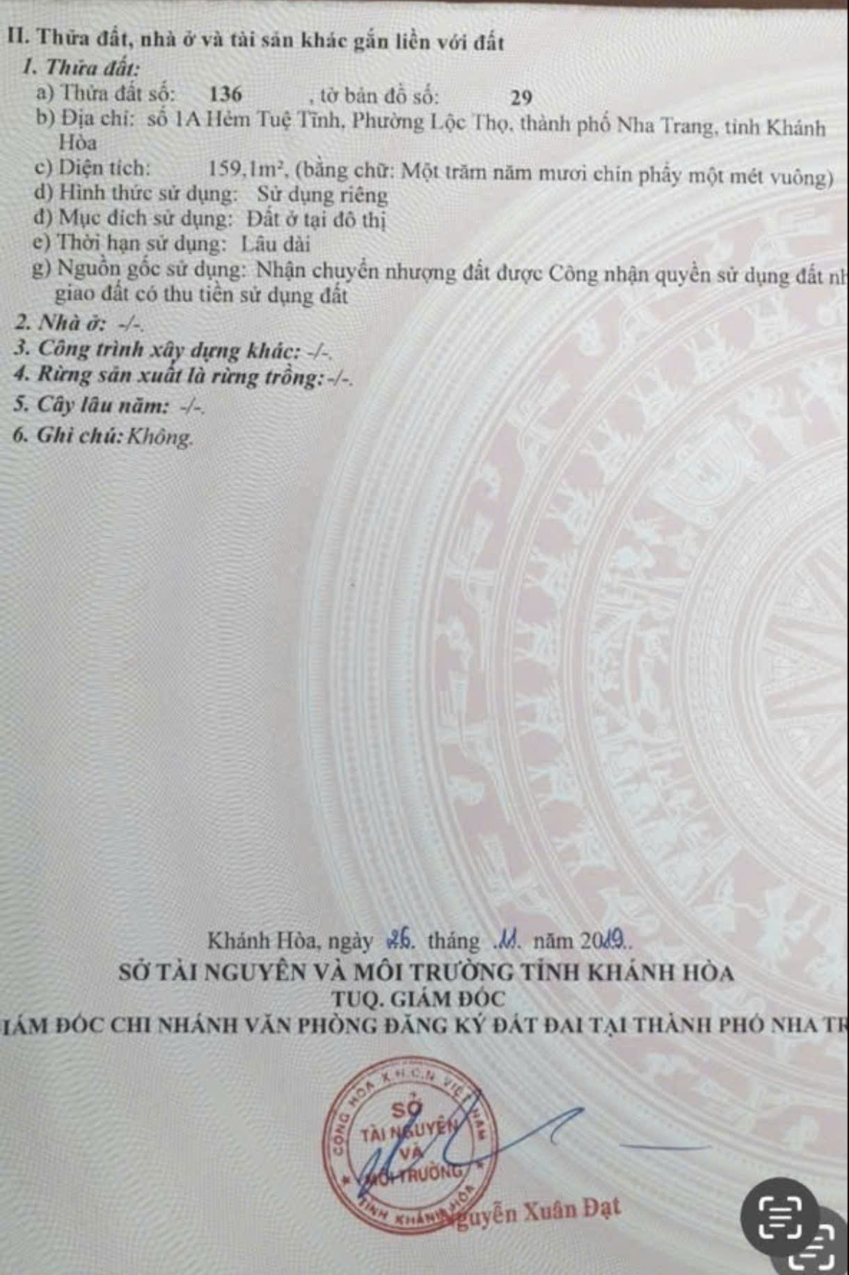 – Diện tích : 159,1m² ngang 8,2m&8,7m, dài 19,2m. Full thổ cư.
